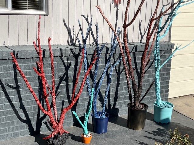Cholla cactus wood is used as bird perches often, the wood skeleton is highly favored for making handicrafted centerpieces and ornamentation for gardens, back patios and center pieces for great rooms, living rooms and conservatories. Larger pieces are used in public art displays and are highly prized and of great value. No two art pieces are the same.
